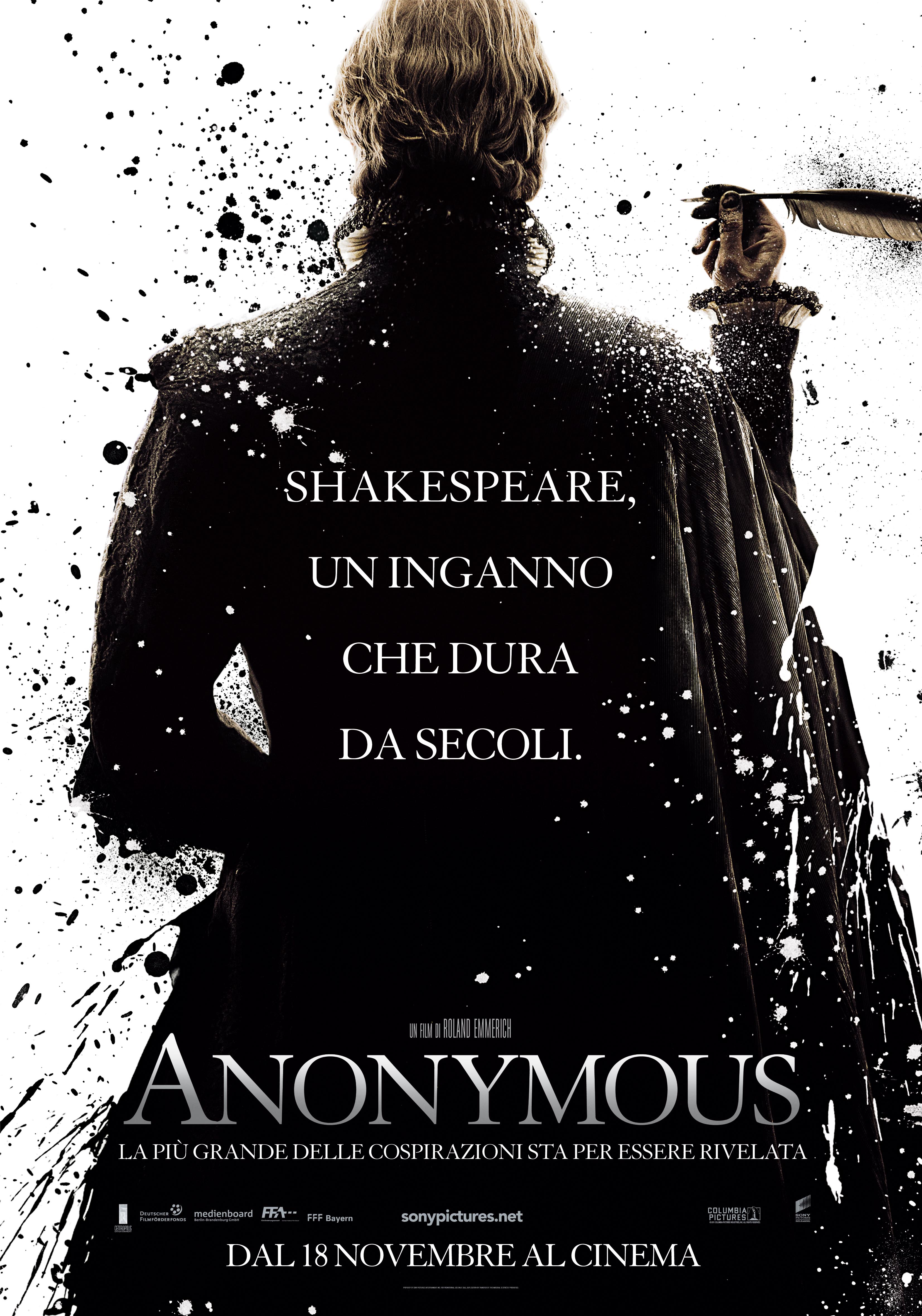 “Anonymous” è un film del 2011 diretto da Roland Emmerich e scritto da John Orloff, con protagonisti Rhys Ifans, Vanessa Redgrave e Rafe Spall. Il film si basa sulla controversia dell’attribuzione delle opere di Shakespeare, secondo la quale le opere del drammaturgo sarebbero in realtà state scritte da un aristocratico elisabettiano, Edward de Vere, diciassettesimo conte di Oxford. Il film parla della vita di Edward de Vere dalla sua infanzia fino alla vecchiaia, vista attraverso gli occhi del poeta Ben Jonson e attraverso vari flashback. Il nobile Edward de Vere è un bambino prodigio nel campo della letteratura fin dall’età di nove anni e si esibisce a corte in una prima versione della commedia “Sogno di una notte di mezza estate” nel ruolo di Puck, da lui stesso scritta, davanti ad una giovane regina Elisabetta I che ne è deliziata.